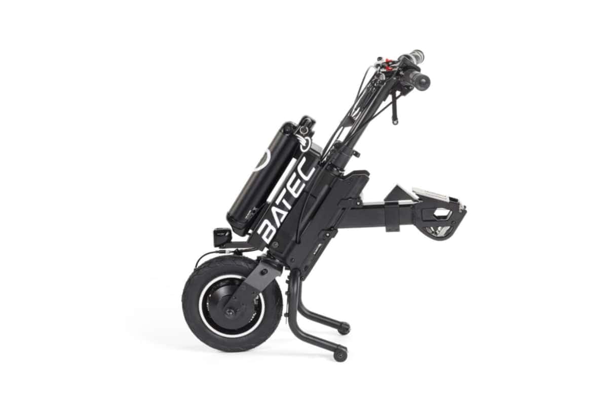 - Thanks to its 10’ wheel, the Batec Air integrates perfectly with your wheelchair, creating an ultra-compact combo. Its small size and reverse gear make it unbeatable for moving freely in tight spaces.